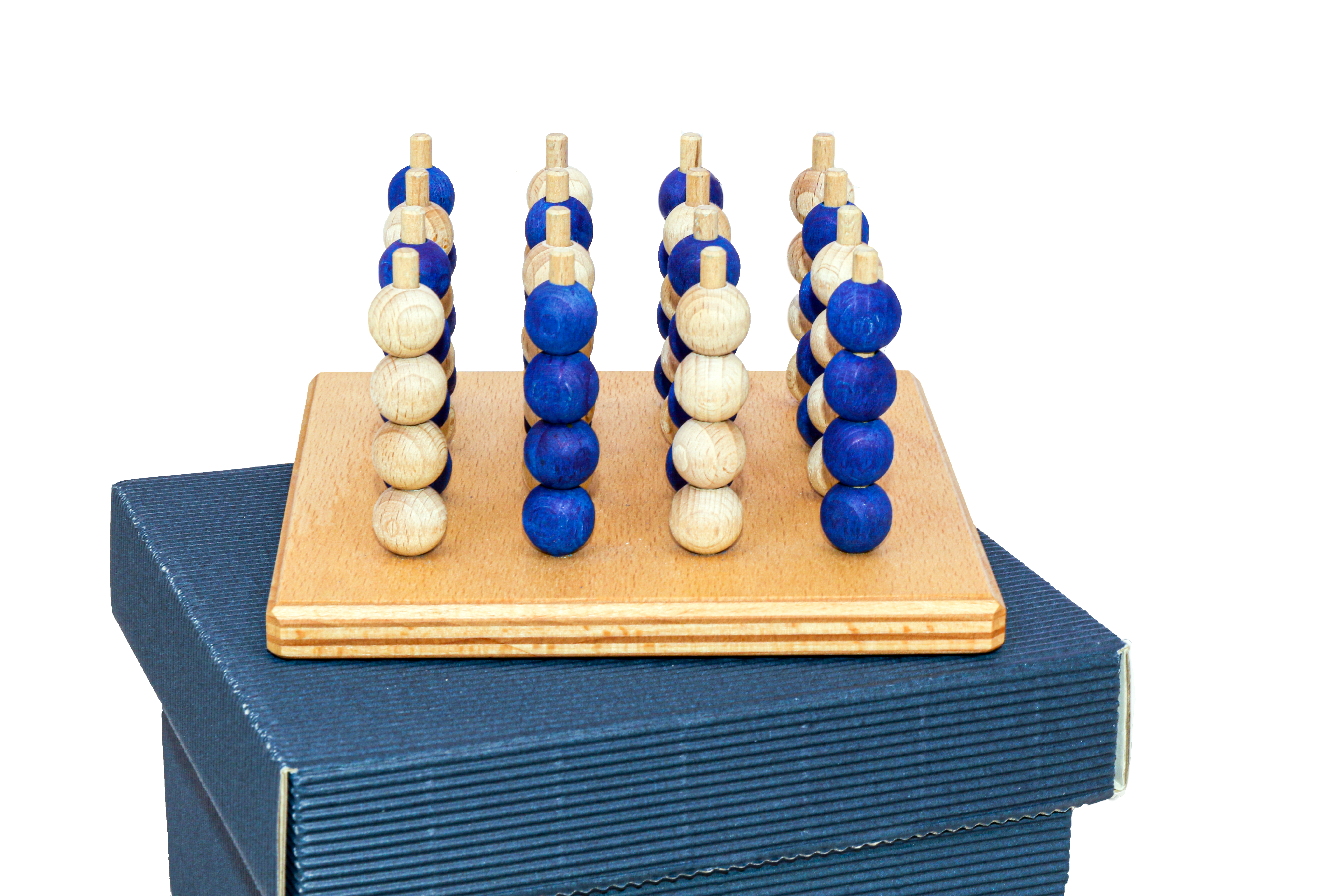 Das Spiel besteht aus 24 Eschenholzwürfeln, welche mit unterschiedlichen Materialien befüllt sind. Verschlossen sind die Würfel mit einem Plexiglasdeckel.