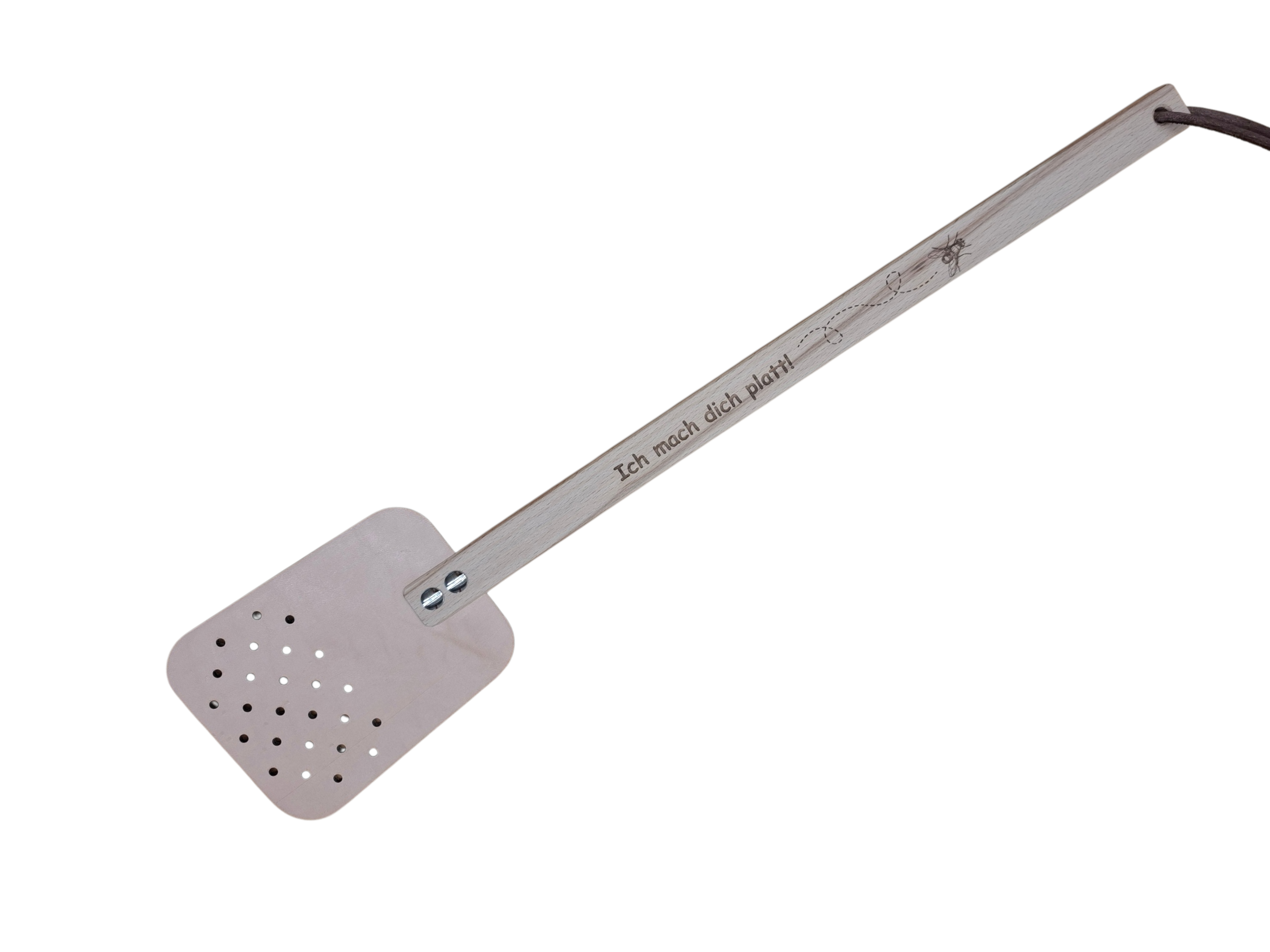 Am Griffende befindet sich eine Lochbohrung mit Lederaufhängung für eine einfache Aufbewahrung.
