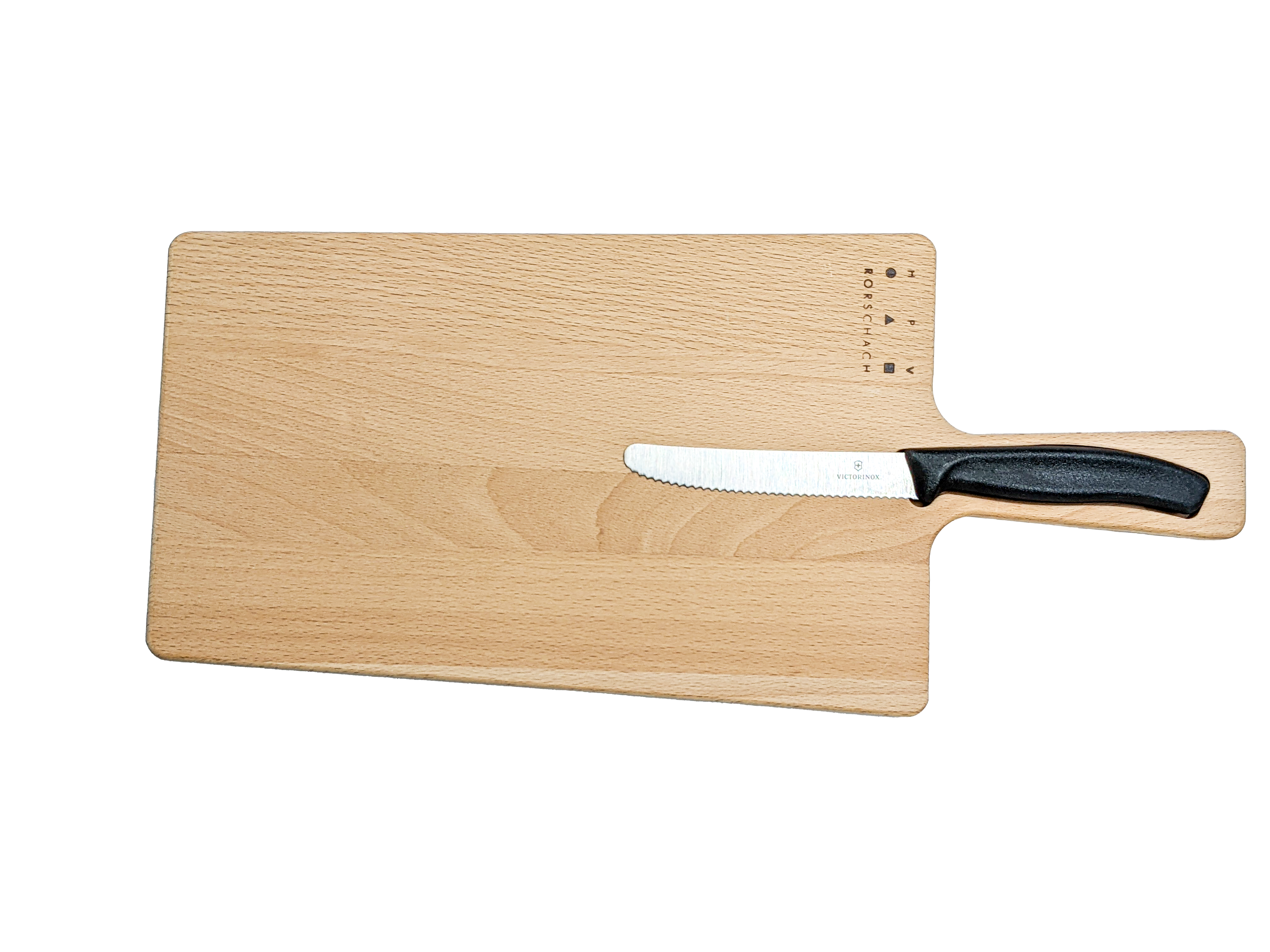 Produktinformationen "Schneidebrett mit Griff und Messer"